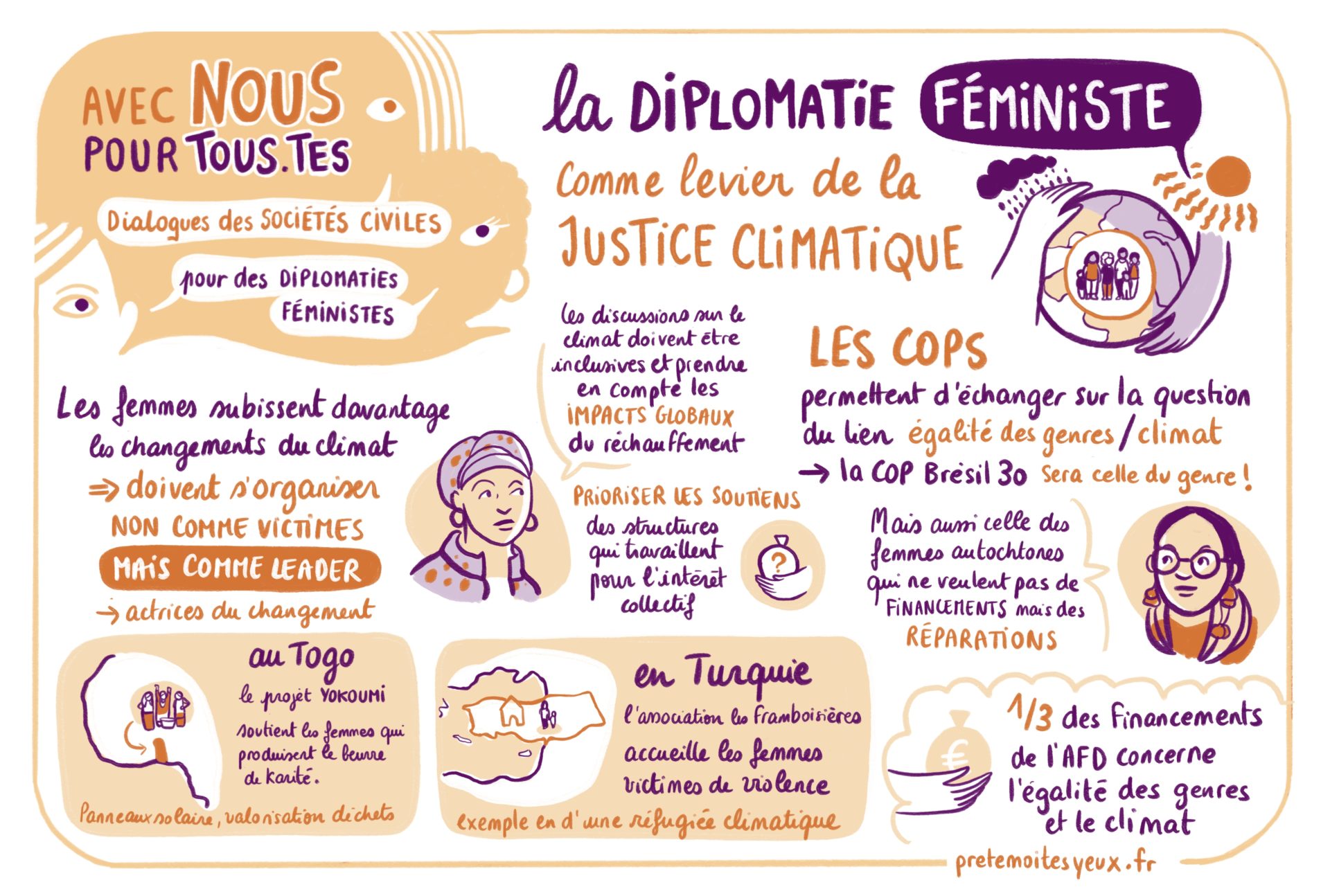 En amont de la 4ᵉ Conférence ministérielle sur les politiques étrangères féministes, un collectif d’organisations de la société civile, dont WECF, a organisé un forum de dialogues féministes le mardi 21 Octobre à Paris. Cet évènement avait pour objectif de rappeler à la France et aux Etats défendant le principe d’une politique étrangère féministe que la société civile était et devait être considérée comme partie prenante à la mise en œuvre de cette politique et que de nombreux efforts devaient être considérés pour protéger partout les droits des femmes dans un contexte international très incertain.