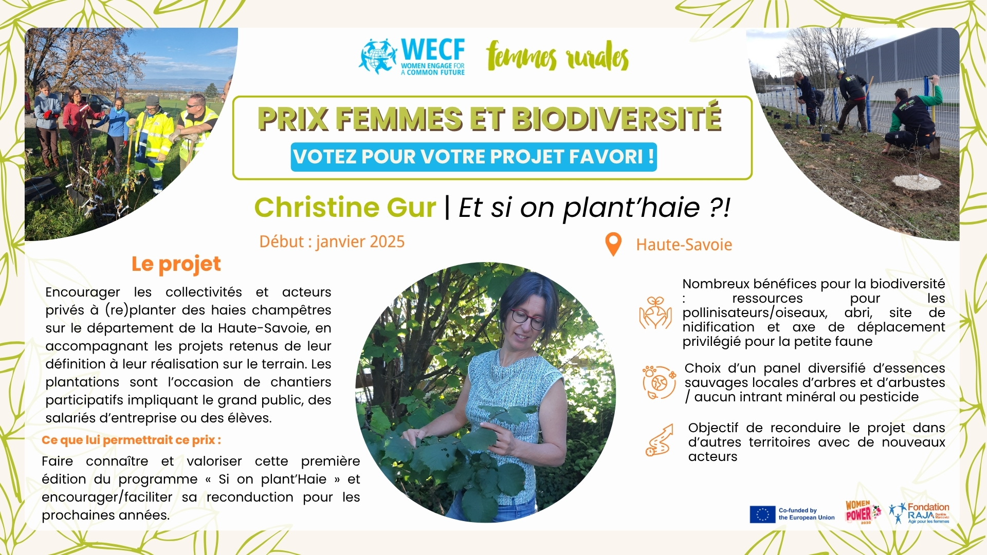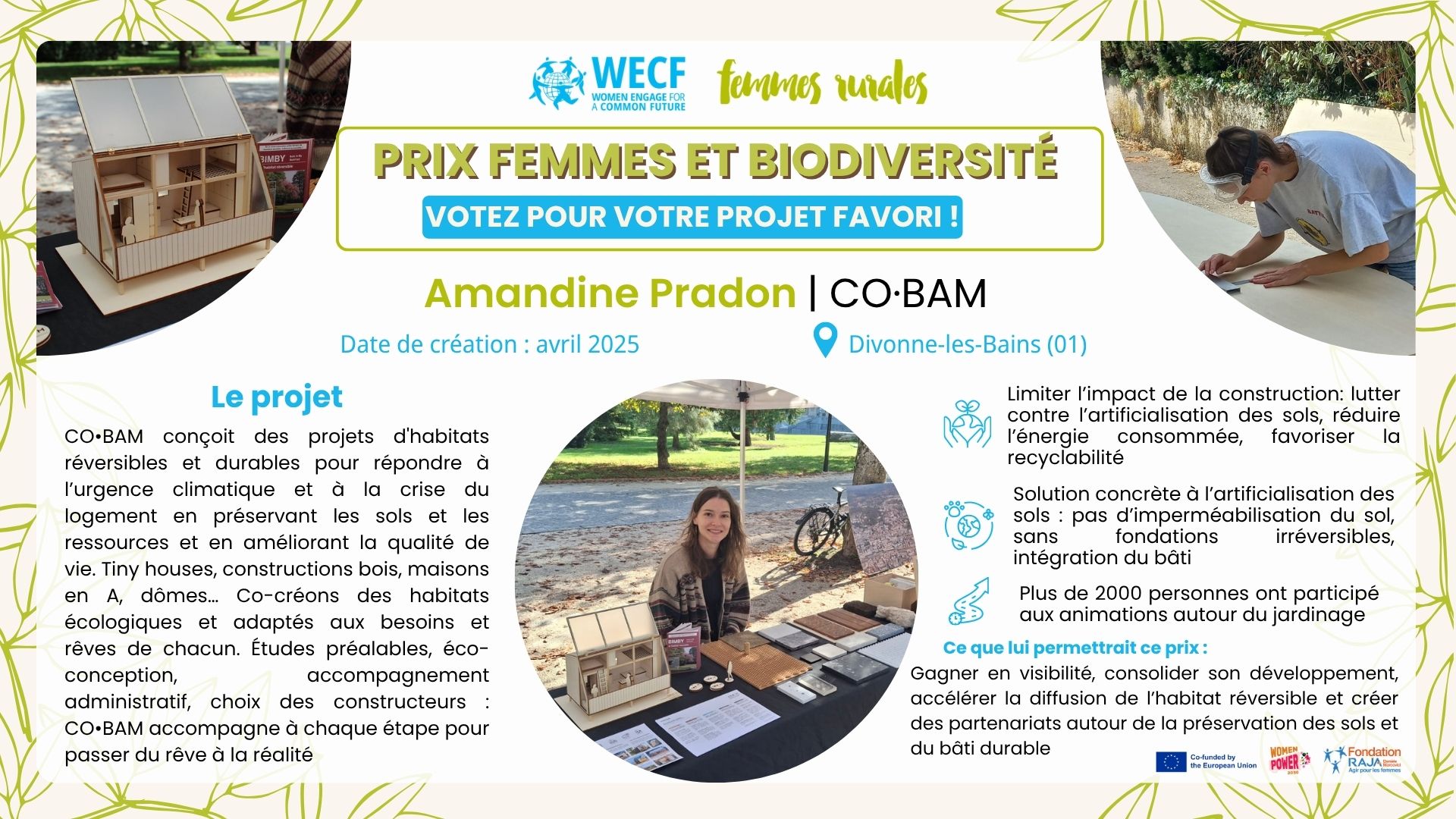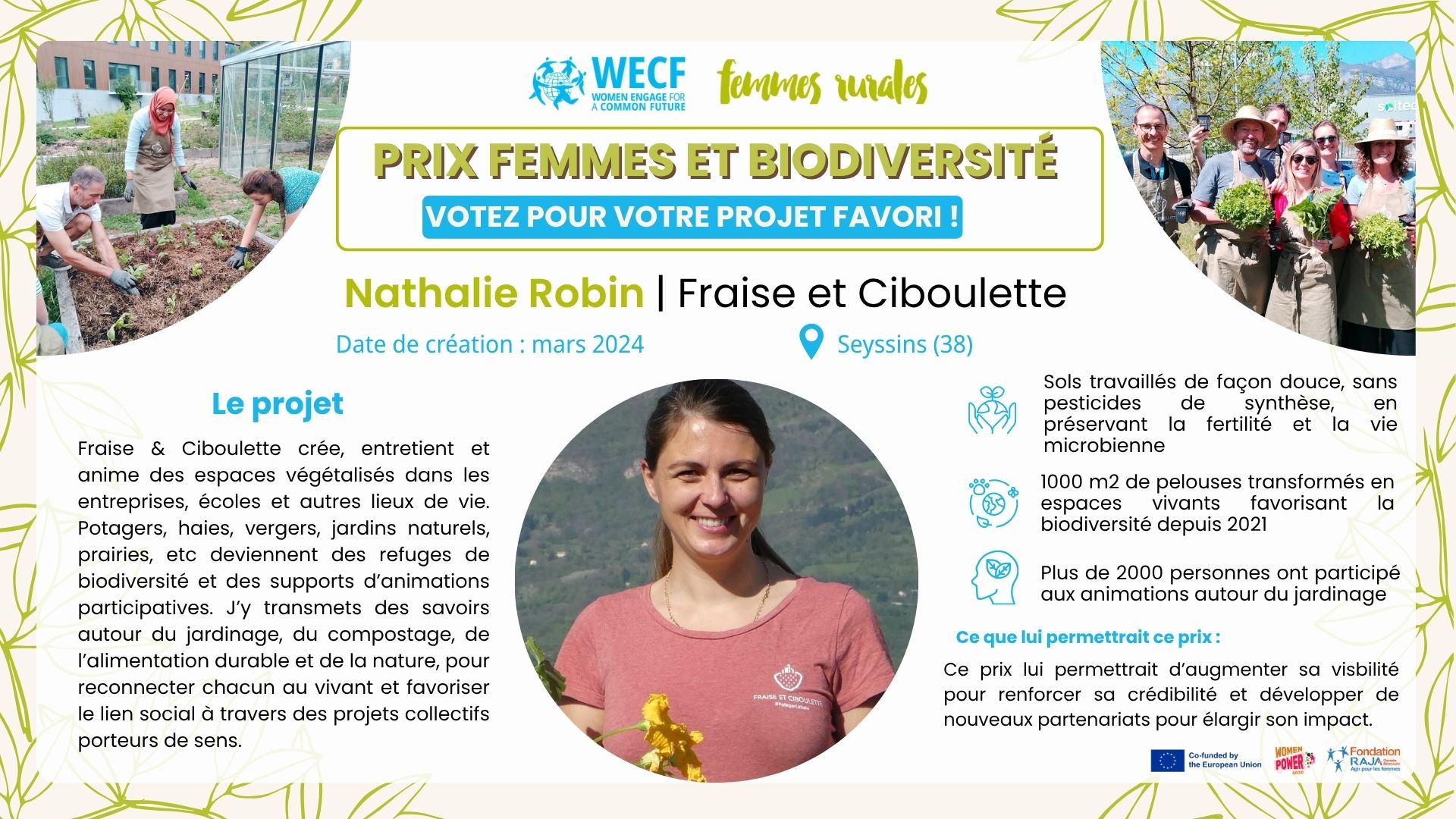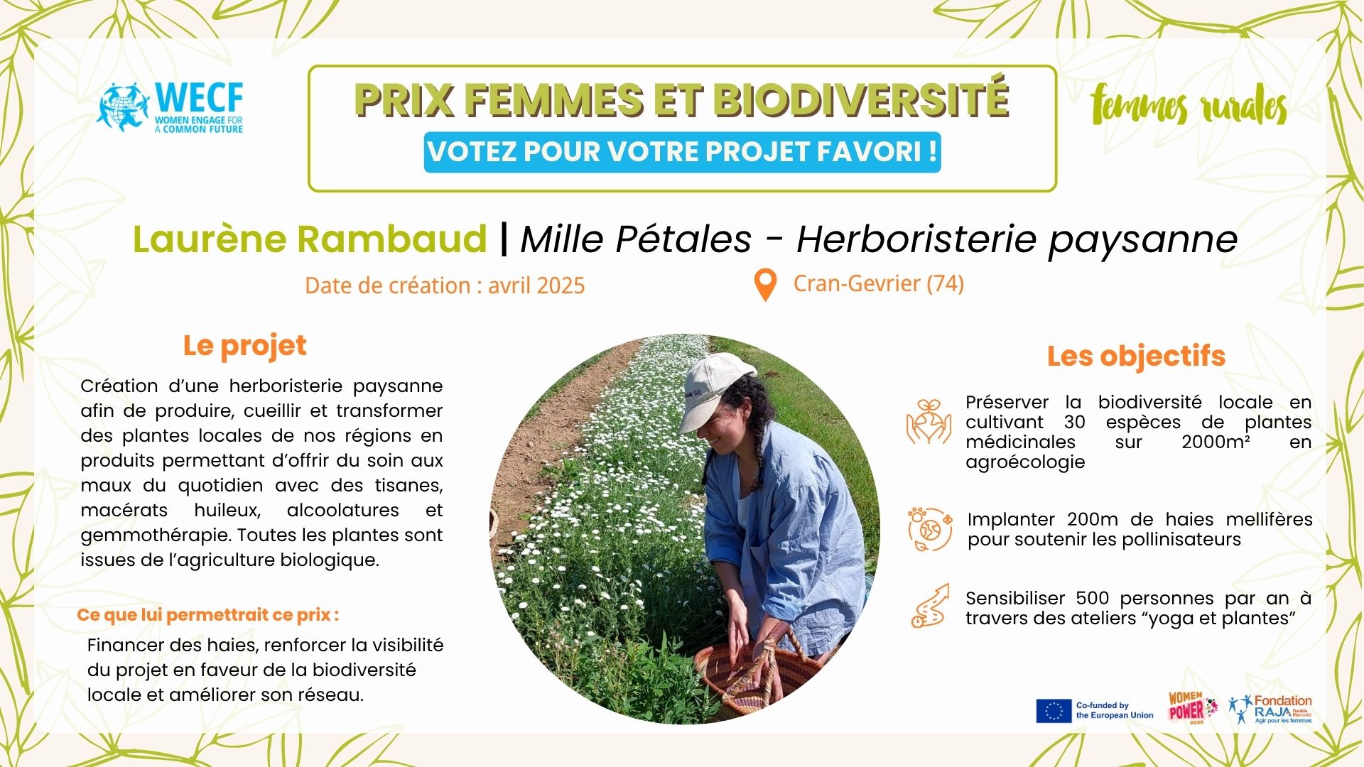 Découvrez les 7 candidates en lice et votez pour votre favorite pour lui permettre de remporter une dotation de 1000€ ! La campagne de vote est ouverte du 10 au 28 novembre 2025. La campagne de vote est ouverte ! Sélectionnez votre projet préféré parmi ceux présentés ci-dessous et votez en remplissant le formulaire de vote sur le lien suivant :